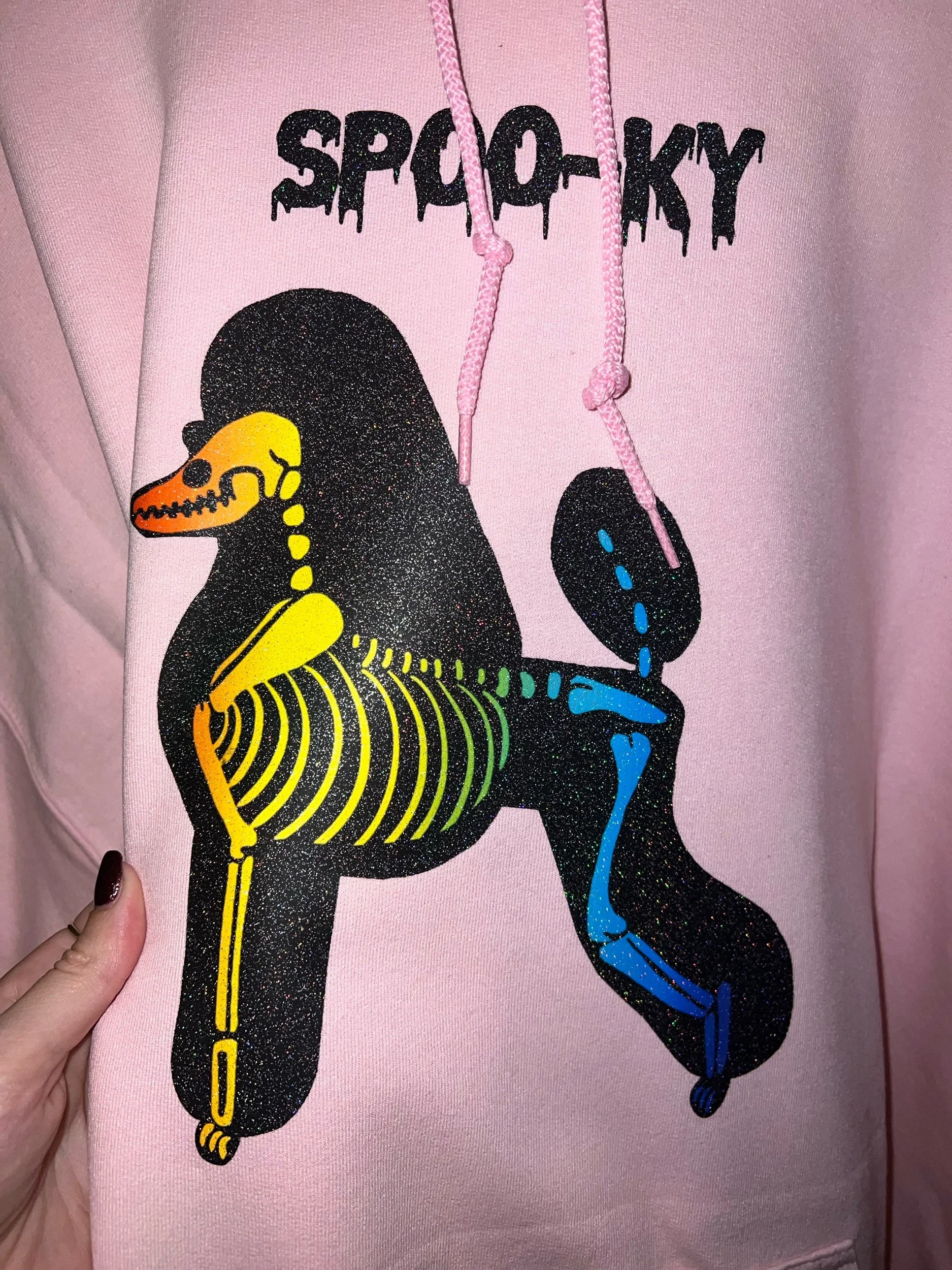 Light pink hoodie glitter rainbow poodle skeleton