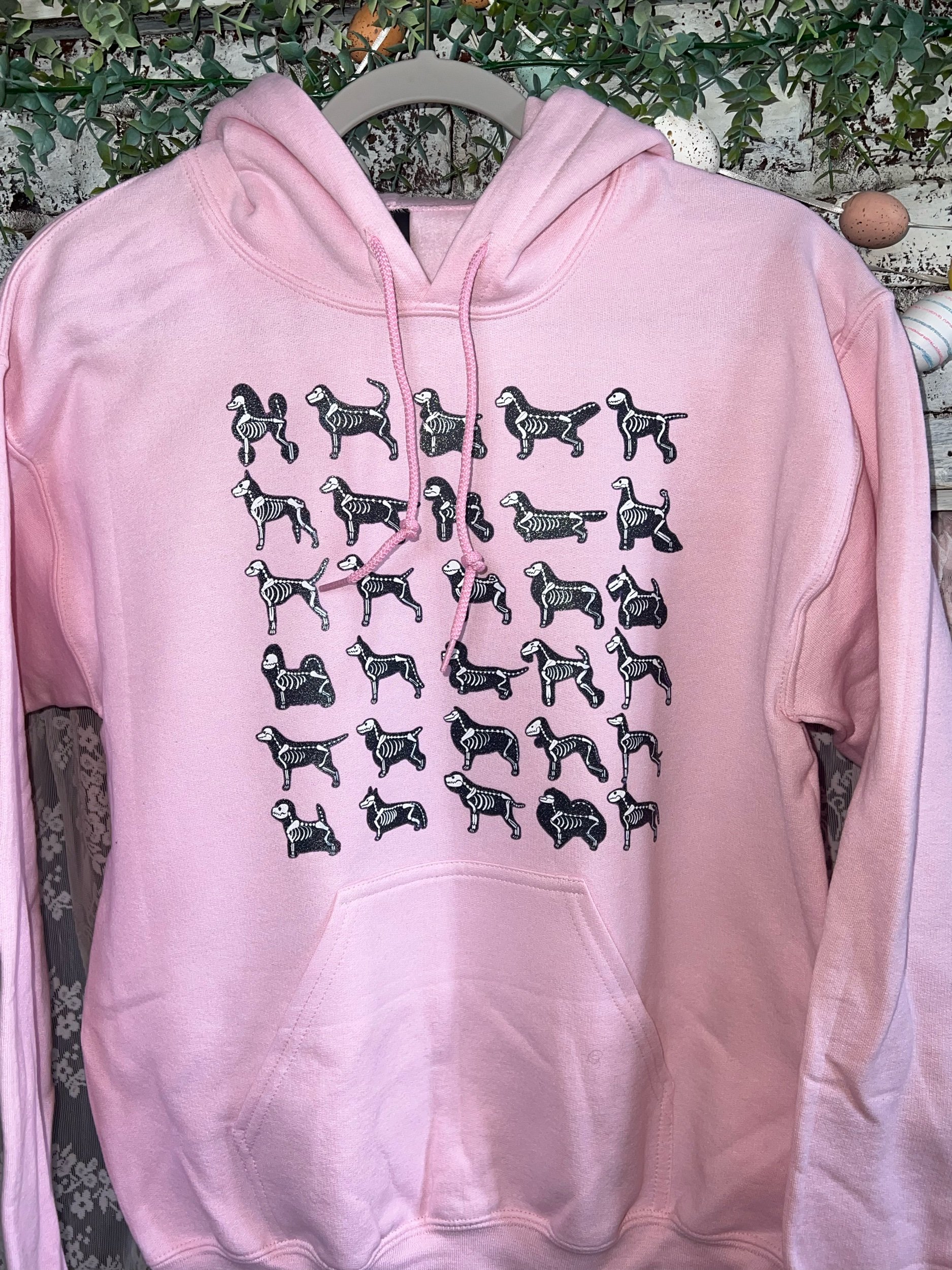 Image 1 of 3 Image 2 of 3 Image 3 of 3 Pink hoodie glitter skeleton dogs $50.00 Pink unisex hoodie with a glitter design of various dog breeds with skeletons! Size: Small Medium Large XL 2XL 3XL 4XL 5XL Add To Cart Added! Pink unisex hoodie with a glitter design of various dog breeds with skeletons! Reviews Reviewer Name Review Date Star Rating Description Posted on Etsy Product Show More